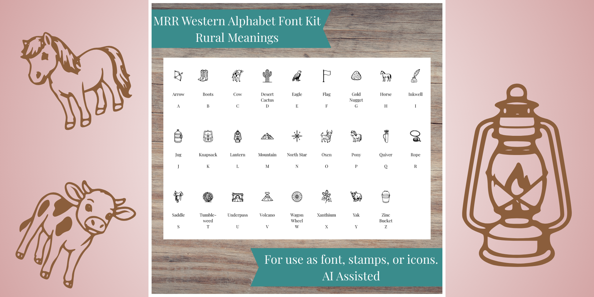 Saddle up your shop by bringing western charm to your products with the MRR Western Alphabet Font Kit. Where every letter comes to life with a matching playful icon, such as H = Horse. It's a playful ready to use collection that makes learning and designing playful. This unique font pairs each letter with a cute western icon, such as H for Horse, making it perfect for kid friendly printables, classroom activities, party sets, and themed collections your audience will love. You’ll receive both OTF and TTF files for easy use in your favorite design tools, plus a versatile activity template featuring Wall Art, Draw the Other Half, Word Matching Game, and Rebus Puzzles. Made for creating kids activities, education resources, party packs, and western themed collections. With MRR (master resell rights) you can easily use the font and/ or template to create your own western inspired PLR and printable products to sell, bundle, or even offer as a gift.
