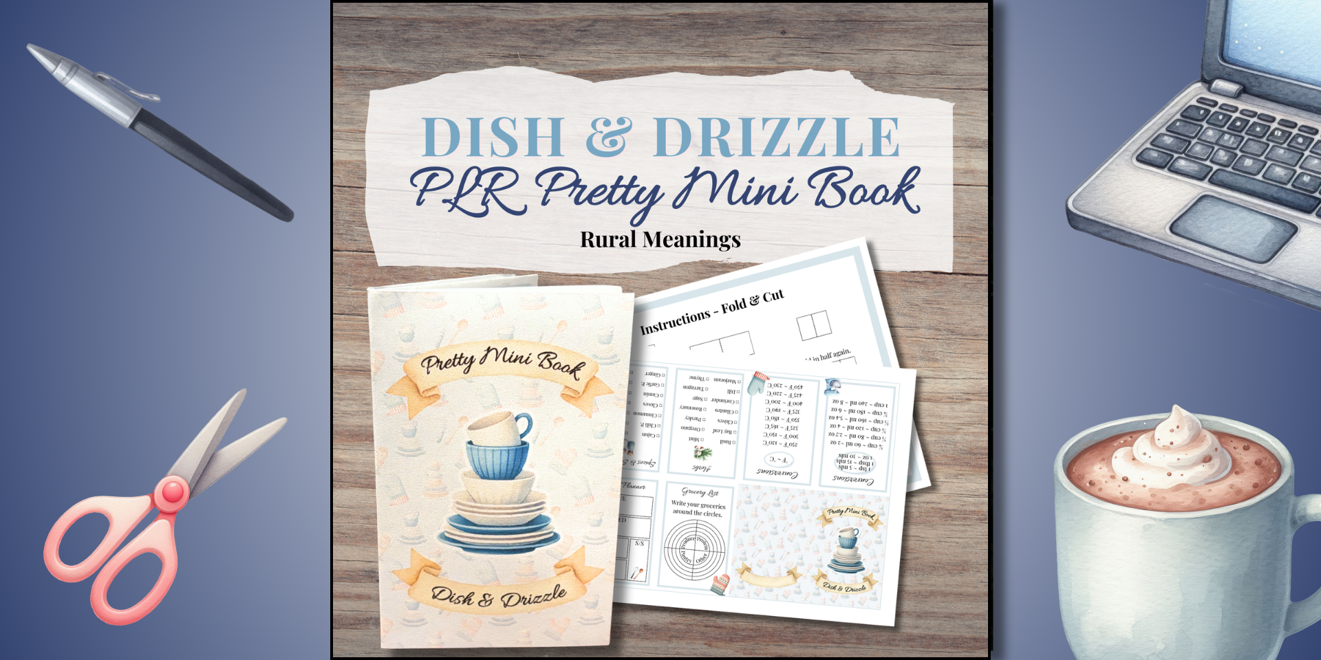 Calm, warm, and organized, just how the heart of the home should feel with the PLR Pretty Mini Book Dish & Drizzle. This foldable mini book transforms one piece of paper into 8 mini practical resourceful kitchen pages using a simple fold and cut method. All in a ready to customize Canva template. Inside, you'll find instructions, a blank base, and the Dish & Drizzle template. Featuring 6 kitchen pages for measuring and temperature conversions for confident cooking, herb and seasonings & spices checklists that feel straight out of a well loved pantry, plus a simple meal planner and grocery list and keep everyday meals calm and intentional. Made for cottage core bundles, hostess gifts, or cozy kitchen printables. With PLR you can easily customize, rebrand, and make it your own to sell!
